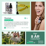 Efter at have skiftet til jeres produkter, har jeg mærket en klar bedring i min almene tilstand. Om dagen 2x2 dråber,giver det mig masser af kræfter og energi og til natten en dråbe , pt 35% Original, ro en klart bedre nattesøvn. Jeg kan klart anbefale det.
