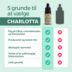 Vores CBDa-ekstrakt er nænsomt udvundet af økologisk cannabis, hvor plantens naturlige struktur bevares. Charlotta-olien er en raw, fuldspektrum olie, rig på cannabinoider, terpener og andre aktive plantestoffer. Den støtter kroppens balance.